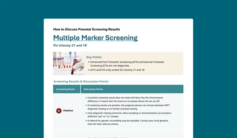 - Once the report is received, results should be communicated in both “screen positive” and “screen negative” scenarios, including the specific risk estimate provided on the report.